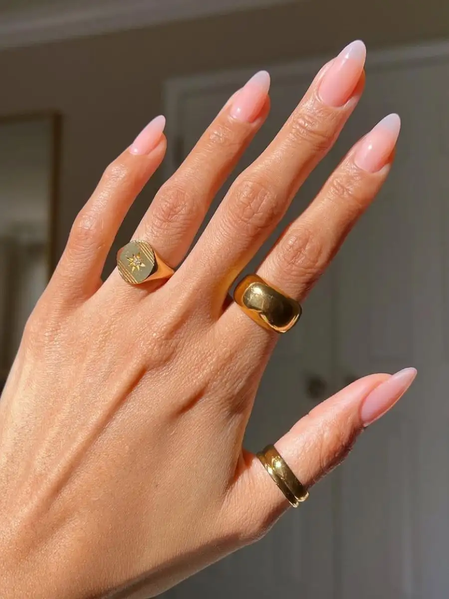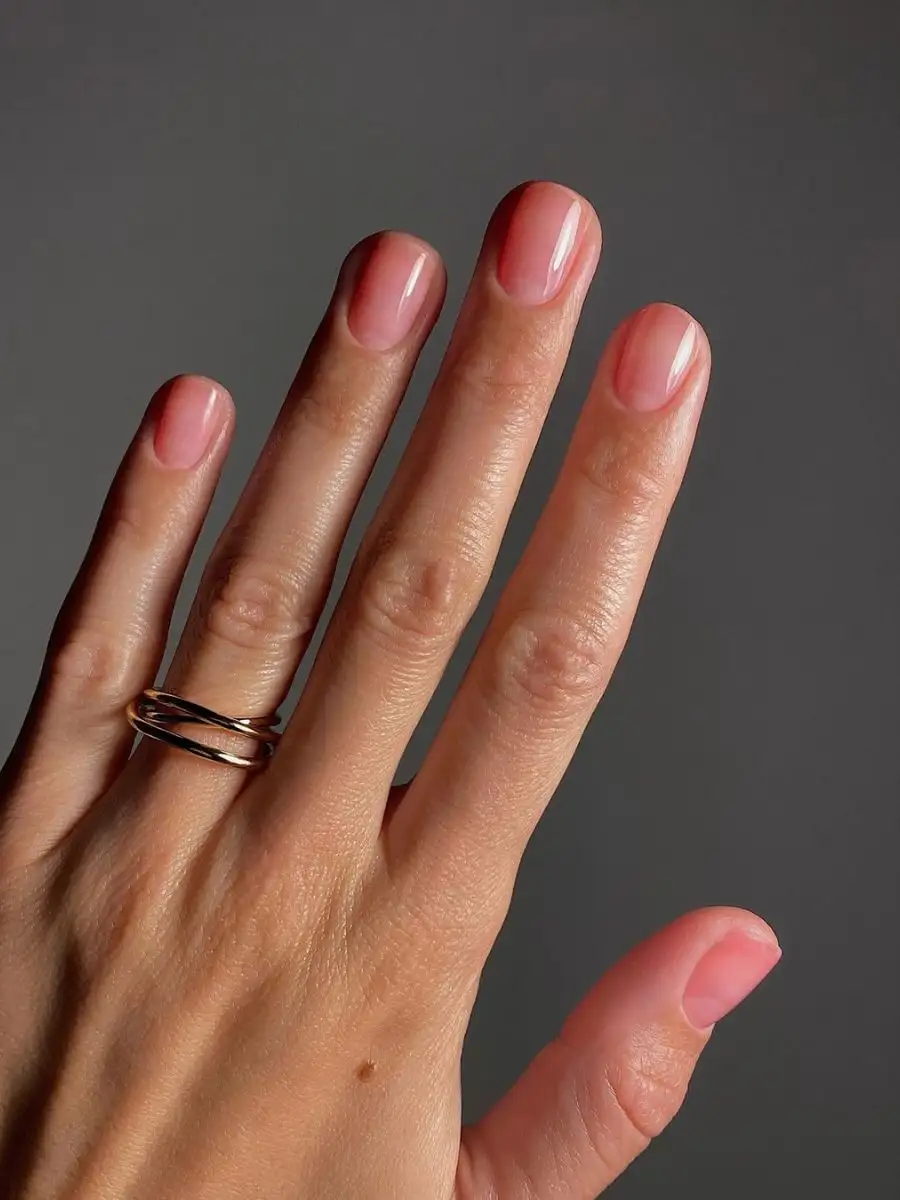 Σε αντίθεση με τα watery nails του καλοκαιριού, τα rosehip oil nails έχουν πιο ζεστή απόχρωση, σαν ένα λεπτό, λαμπερό πέπλο λαδιού πάνω σε καθαρά νύχια. Είναι κομψά, φυσικά και εκπέμπουν «clean girl» ενέργεια με φθινοπωρινή πινελιά.