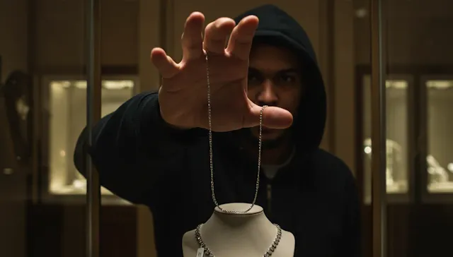 Με την είσοδό τους στο κατάστημα, οι δύο από τους τρεις δράστες έσπασαν τη βιτρίνα του κοσμηματοπωλείου, ενεργοποιώντας τον συναγερμό. Παρέμειναν στο εσωτερικό για μόλις 20 δευτερόλεπτα, συγκεντρώνοντας όσα κοσμήματα μπορούσαν πριν διαφύγουν. Ο τρίτος συνεργός τους κρατούσε τσίλιες στο εξωτερικό.