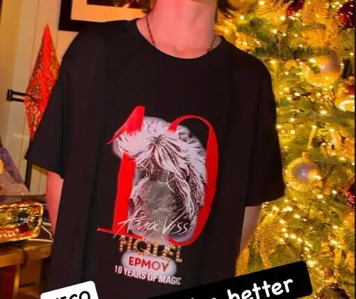 Τις πρώτες εικόνες μοιράστηκε η Άννα Βίσση μέσα από τον λογαριασμό της στο instagram. Στη μία ποζάρει η ίδια από την πολυθρόνα, ενώ στην άλλη βλέπουμε τον εγγονό της να φορά το T-Shirt για τα 10 χρόνια των εμφανίσεών της σε γνωστό νυχτερινό κέντρο. Όπως σχολιάζει στην ανάρτησή της, δεν θα μπορούσε να βρει καλύτερο μοντέλο!