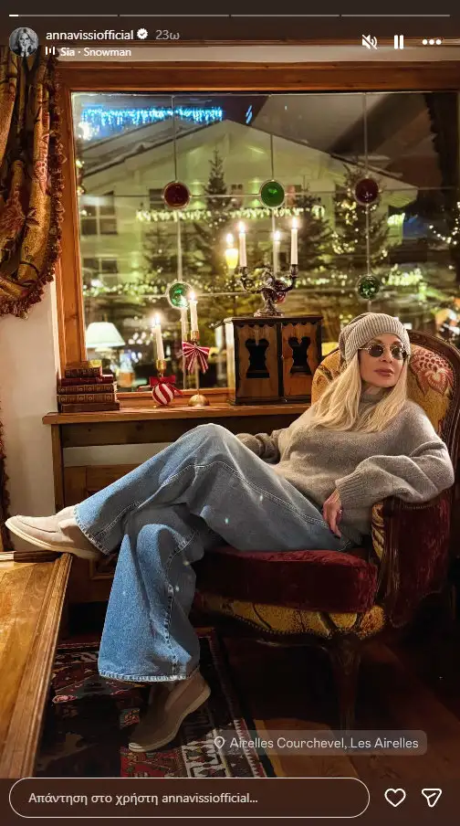 Η δημοφιλής τραγουδίστρια βρίσκεται στο Κουρσεβέλ, ένα από τα πιο πολυτελή χειμερινά θέρετρα της Γαλλίας, εκεί όπου χαλαρώνει για τις ημέρες των γιορτών.