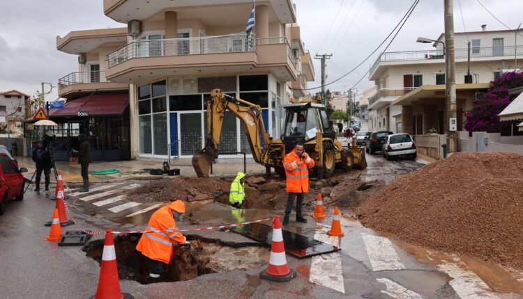 Κακοκαιρία «Byron»: Έσπασε αγωγός ύδρευσης στη Μάνδρα και άνοιξε τεράστια τρύπα σε κεντρικό δρόμο της πόλης – ΦΩΤΟ και ΒΙΝΤΕΟ