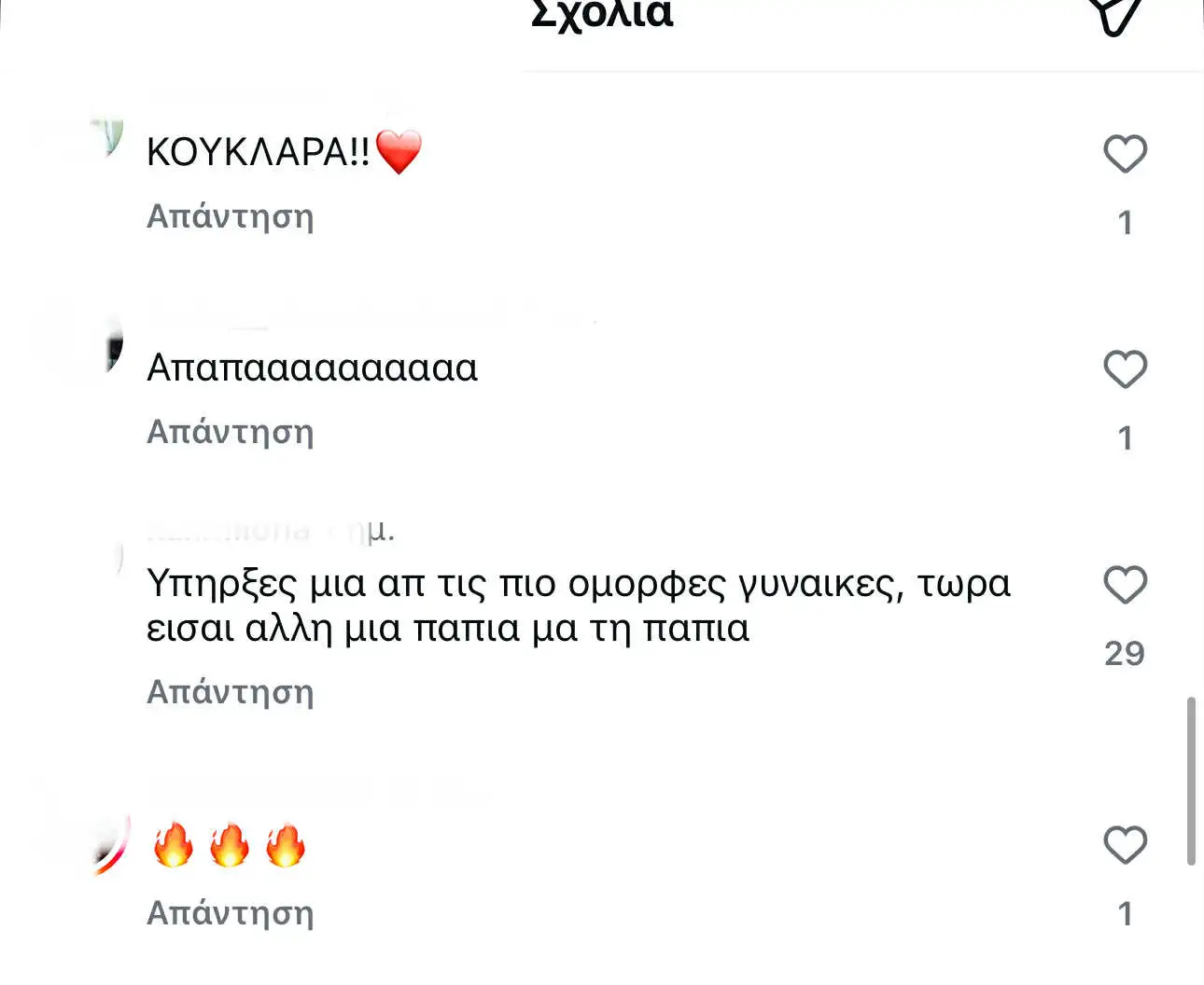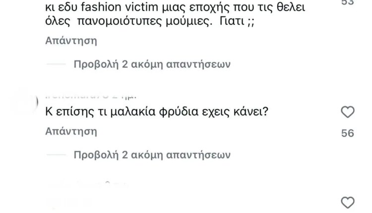 Δες παρακάτω μερικά από τα σχόλια που έγραψαν στο instagram για την Αγγελική Ηλιάδη: