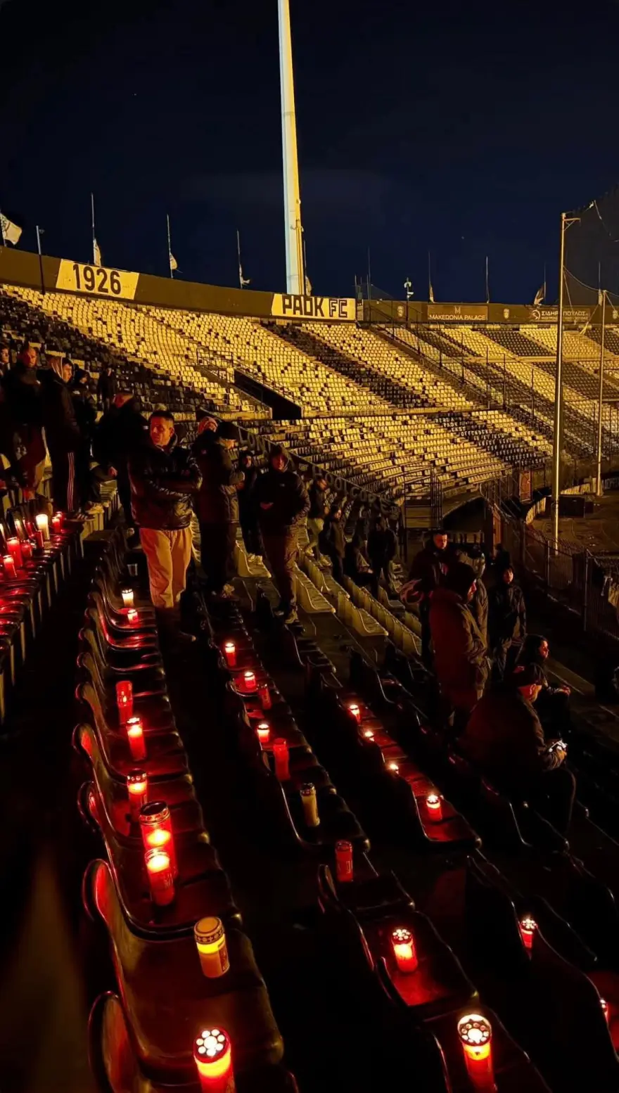 Πολλοί φίλοι του «Δικέφαλου του Βορρά» δεν μπορούσαν να περιμένουν το αυριανό κάλεσμα φόρο τιμής στους νεκρούς οπαδούς και συγκεντρώθηκαν από σήμερα στη Θύρα 4 της Τούμπας. Εκεί άναψαν κεριά και κρέμασαν ένα ολόλευκο πανό που έγραφε με μαύρα γράμματα: «Καλό Παράδεισο Αδέρφια»: