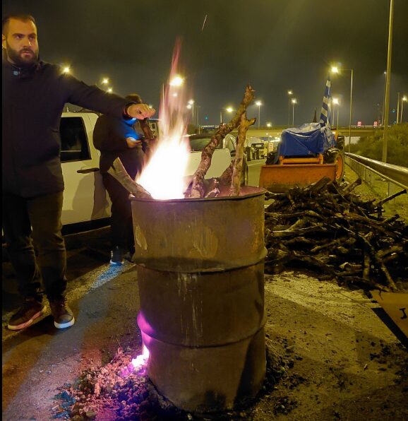 ΜΑΧΙΜΟΙ παρά το κρύο για τους αγρότες στο μπλόκο Θουρίας: “Στο κρύο και τη βροχή, αλλά όρθιοι-Δεν σταματάμε να διεκδικούμε”