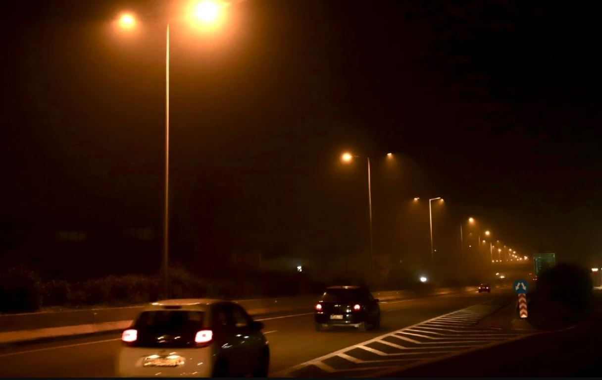Το neakriti.gr κατέγραψε εικόνες από τον Βόρειο Οδικό Άξονα Κρήτης, όπου τα φώτα των οχημάτων, σε συνδυασμό με την πυκνή σκόνη που αιωρούνταν στον αέρα, δημιουργούσαν σκηνές που θύμιζαν θρίλερ.