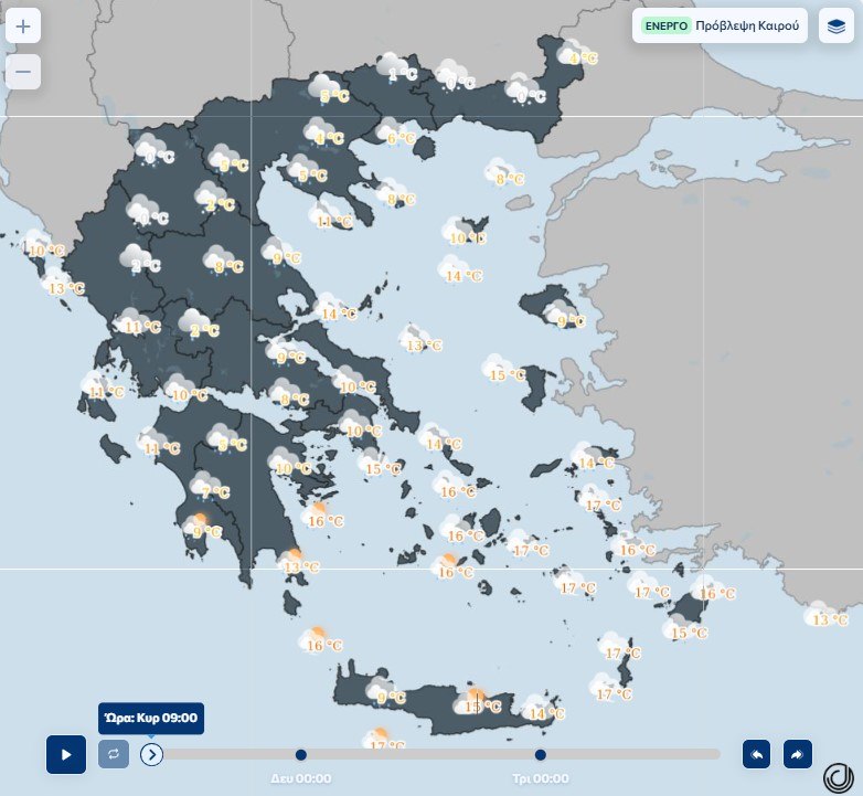 - Στα Δωδεκάνησα και την Κρήτη μέχρι τις πρωινές ώρες (πορτοκαλί προειδοποίηση)