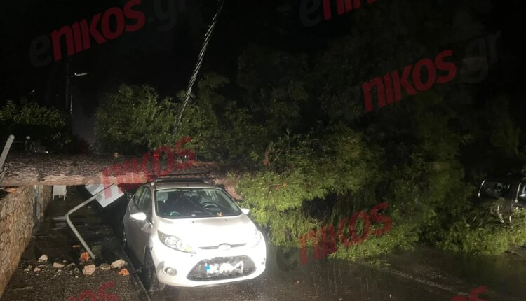 Όπως φαίνεται σε φωτογραφίες και βίντεο που έστειλε αναγνώστης του enikos.gr, το τεράστιο δέντρο έσπασε την περίφραξη της πολυκατοικίας και έπεσε πάνω σε τουλάχιστον δύο οχήματα. Επίσης έχει παρασύρει και ένα καλώδιο.