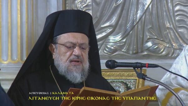 Κατά το μήνυμά του στον κλήρο ο Μητροπολίτης Μεσσηνίας Χρυσόστομος είπε: «Η σημερινή ημέρα, όμως, σηματοδοτείται με τη συμμετοχική παρουσία του πρώην Πρωθυπουργού κ. Κωνσταντίνου Καραμαλή, προς τον οποίον η τοπική Εκκλησία, μαζί με τις ευχαριστίες της για την παρουσία του, ήρθη στην απόφαση όπως απονείμει το μετάλλιο της Υπαπαντής, αναγνωρίζουσα στο πρόσωπό του την προσφορά του όχι μόνο στη χώρα και στην πατρίδα μας, αλλά και στην πόλη της Καλαμάτας με την ένταξη έργων υποδομής και πολιτισμού, αλλά κυρίως με τη σημαντική συμβολή του στην εδραίωση, ανάπτυξη και λειτουργία στη Σχολή Ανθρωπιστικών Επιστημών και Πολιτιστικών Σπουδών εδώ, στην πόλη της Καλαμάτας, επί πρωθυπουργίας του. Τιμάται ο Κωνσταντίνος Καραμαλής, όμως, και για τη σταθερότητα των θέσεων και απόψεών του σε ζητήματα εθνικούς συμφέροντος, ως επίσης και για τον αμετακίνητο αγώνα του στην πρόοδο και στην ανάπτυξη της πατρίδος μας στο πλαίσιο των εκάστοτε γεωπολιτικών εξελίξεων. Οδηγός του πάντα, το συμφέρον της πατρίδος. Γι’ αυτό και είναι ένας γνήσιος εκφραστής ενός έντιμου πατριωτισμού, ενός φρονήματος δηλαδή, το οποίο δεν επιδέχεται εκπτώσεις ή υποχωρήσεις, αλλά συγχρόνως καλλιεργεί τον διάλογο. Και έτσι, χωρίς εχθρότητα εναντίον οποιοδήποτε άλλου, ως έντιμος και ειλικρινής συνομιλητής και Έλληνας πατριώτης, γνωρίζει καλώς ότι πρέπει να συνυπάρχουμε μεν ειρηνικά, χωρίς όμως να θυσιάζουμε τίποτα από αυτά που μας ανήκουν και μας αναλογούν. Σας ευχαριστούμε πολύ, κύριε Πρόεδρε. Σας ευχόμεθα, οι δια πρεσβειών της Υπεραγίας Θεοτόκου, ο Θεός να δίδει στη ζωή σας και στη ζωή των οικογενειών σας ειρήνη, δύναμη, προκοπή και κάθε πρόοδο.»
