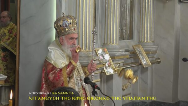 ΣΥΓΚΙΝΗΣΗ- Όπως κάθε χρόνο, η Καλαμάτα τίμησε με λαμπρότητα την Πολιούχο της, Παναγία Υπαπαντή. Πλήθος κόσμου από κάθε γωνιά συνέρρευσε για να προσκυνήσει την θαυματουργή εικόνα της Παναγίας ζητώντας πάνω απ΄ όλα υγεία, και στεκόμενοι στο εικόνισμά της με προσδοκία, σεβασμό, ευγνωμοσύνη και ελπίδα.
