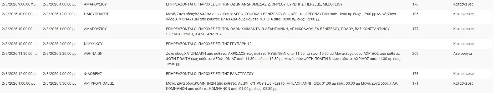 Διακοπές ρεύματος έχει προγραμματίσει για σήμερα, Δευτέρα 2 Μαρτίου 2026, ο ΔΕΔΔΗΕ σε διάφορες περιοχές της Αττικής.