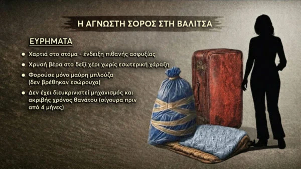 Φως στο Τούνελ: Νέες αποκαλύψεις για τη σορό σε βαλίτσα στη Χαλκιδική – Η χρυσή βέρα και τα χαρτιά στο στόμα του θύματος