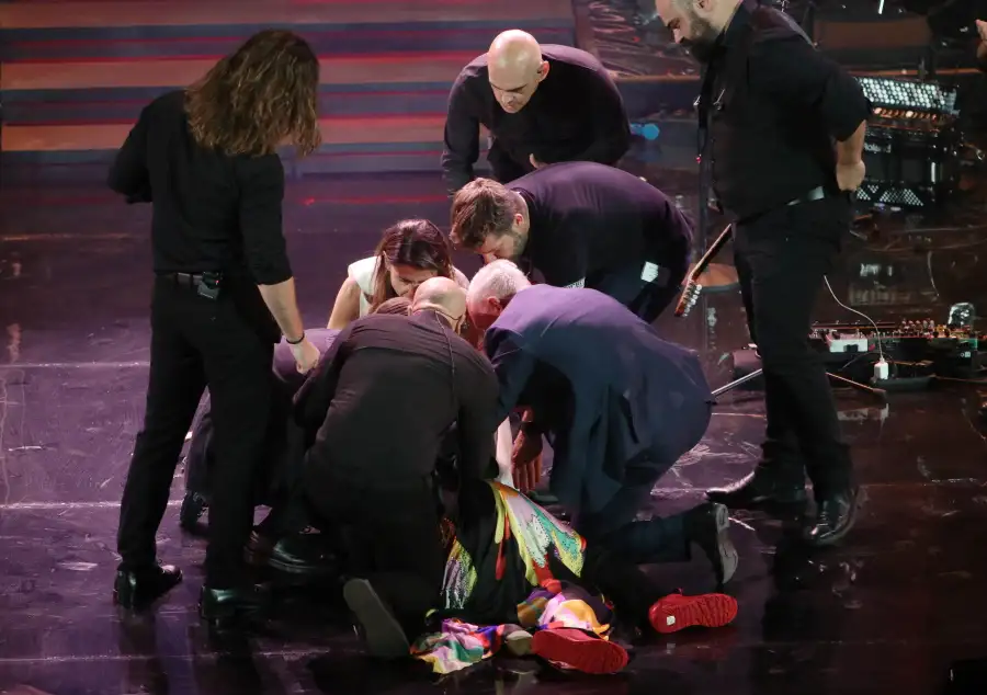 Αμέσως της δόθηκαν οι πρώτες βοήθειες, μεταφέρθηκε στα καμαρίνια όπου ανέκτησε τις αισθήσεις της και σχεδόν μια ώρα μετά μεταφέρθηκε στο νοσοκομείο όπου διαγνώσθηκε με σοβαρό αγγειακό εγκεφαλικό επεισόδιο (αιμορραγία). Την ίδια ώρα, οι θεατές ενημερώνονταν από την παραγωγή ότι η συναυλία αναβάλλεται οριστικά.