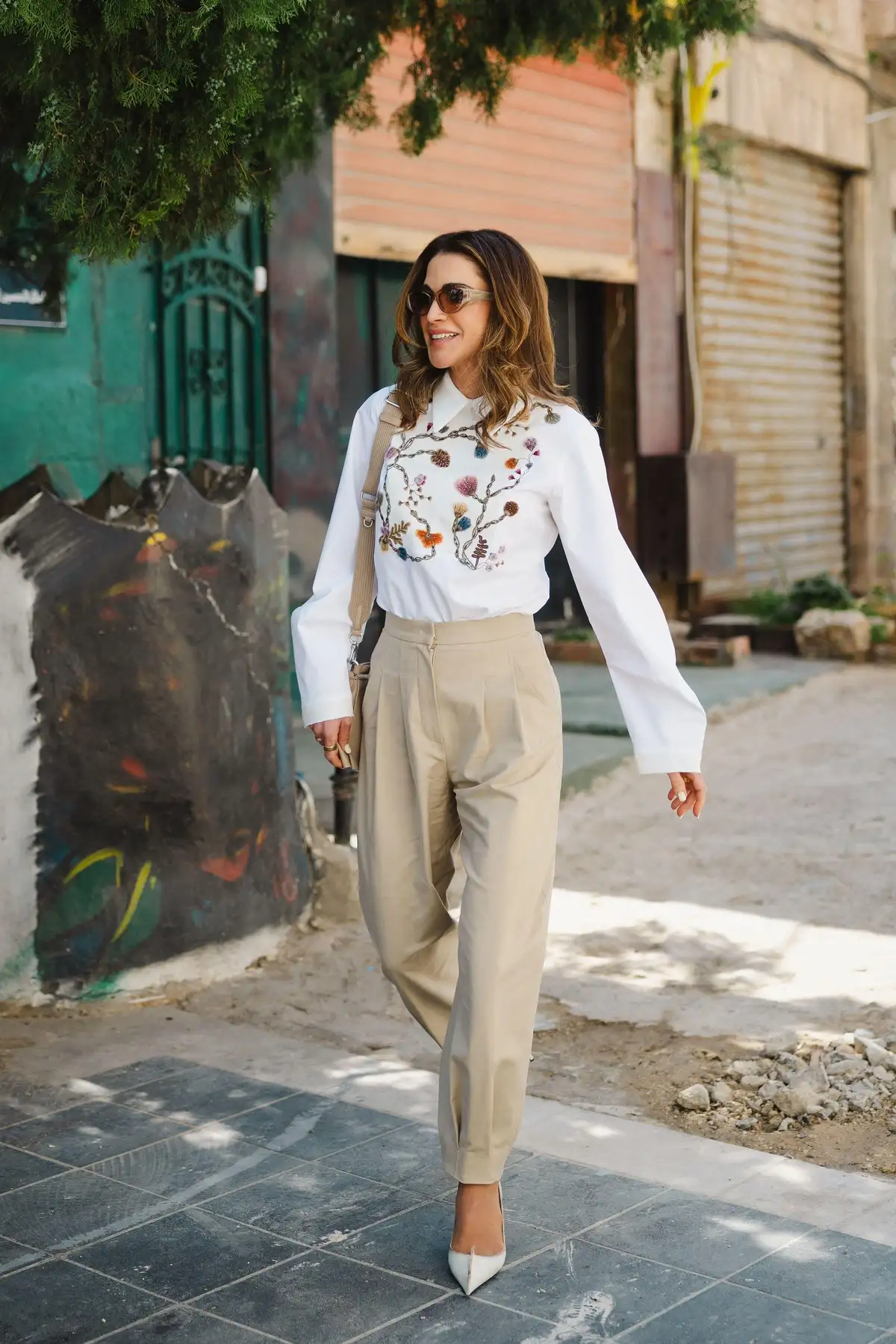 Από τις πιο κομψές εμφανίσεις της εβδομάδας ανήκει στη Queen Rania, που επέλεξε ένα romantic top με μπεζ παντελόνι, ένα σύνολο που ισορροπεί τέλεια ανάμεσα στο chic και το σύγχρονο.