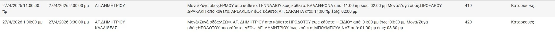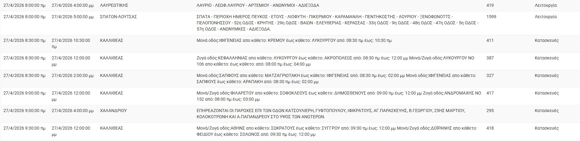 Διακοπές ρεύματος έχει προγραμματίσει για σήμερα, Δευτέρα 27 Απριλίου 2026, ο ΔΕΔΔΗΕ σε διάφορες περιοχές της Αττικής.